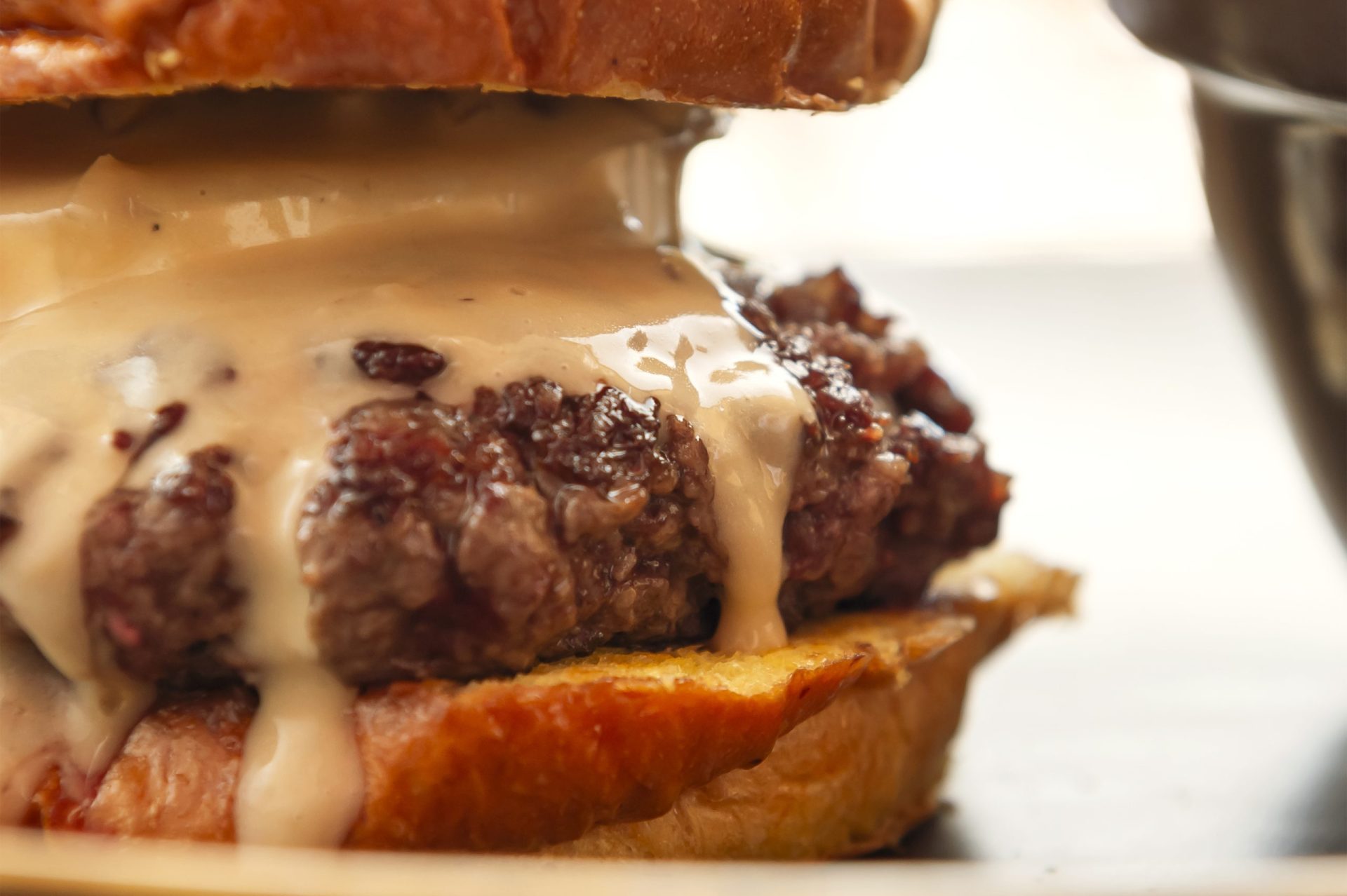 HAMBURGUESA DIVENTO 14,5 carne de ternera sin aditivos hecha a mano, con cebolla dulce, queso tierno de cabra y salsa de galletas lotus acompañada de patatas fritas Alérgenos ionicons-v5-e ionicons-v5-l
